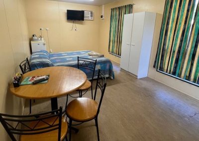 Bunkhouse accommodation is an open plan room and has 1 x Queen bed and is supplied with linen and towels. Bunkhouse has NO running water, cooking facilities or Ensuite. It is situated near the Camp Kitchen and is 50m from the amenities. Has TV, Air-Con, Bar fridge, Kettle, Toaster, plates and cutlery. PET FRIENDLY.